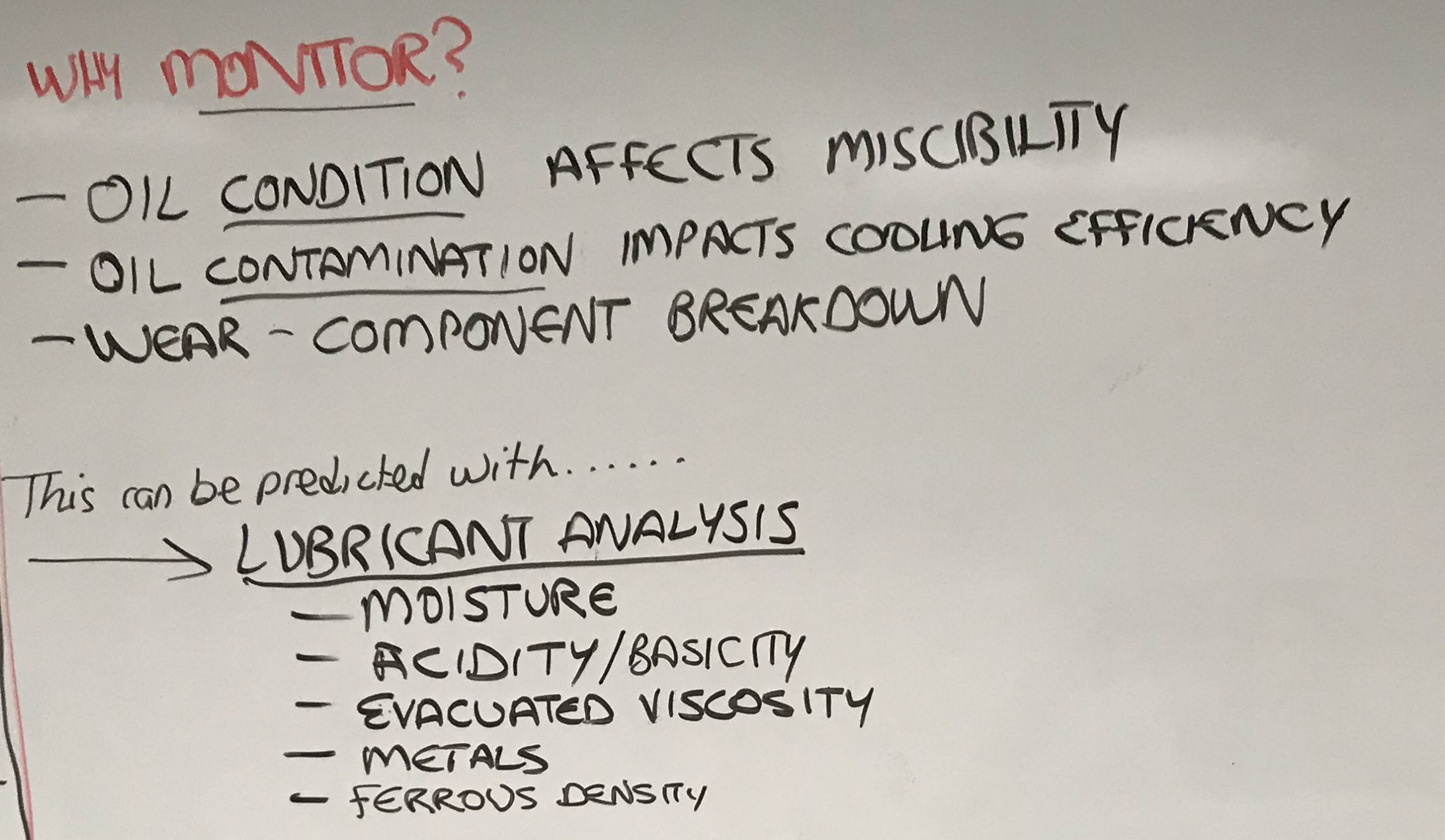 Oil condition - oil condition can affect the lubricant's miscibility in the oil. We should check to make sure it's the right type of oil and it is in good condition