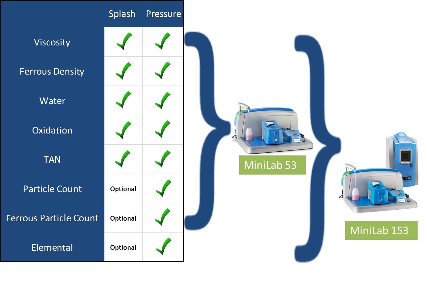 Elemental spectroscopy is a technique for detecting and quantifying metallic elements in used oil resulting from wear, contamination and additives. The oil sample is energized to make each element emit or absorb a quantifiable amount of energy, which indicates the element's concentration in the oil. The results reflect the concentration of all dissolved metals (from additive packages) and particulates. This test is the backbone for all on-site and off-site oil analysis tools , as it provides information on machine, contamination and wear condition relatively quickly and accurately. Its major limitation is that its particle detection efficiency is poor for particles 5 microns in size or larger, which is why the Ferrous density must be measured first.