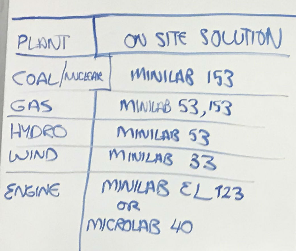 Not all power plants are the same, so there isn't really a one-size fits all solution that will apply to all power generators. For instance, a collection of nearby power plants might benefit from a central, on-site oil analysis lab, whereas wind turbines might best be served by portable oil analyzers that can be brought right to the wind turbine to test oil samples. In general we have found that the size of the power generating plant corresponds with the number of samples required.