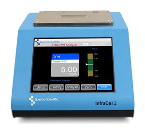 The InfraCal 2 analyzer with an ATR sample stage can now be used for measuring the 0.5-10% range of oil in water or soil. The sample is extracted using a solvent that does not have an infrared absorbance at the hydrocarbon wavelength and, therefore, does not require evaporation. Measuring the extract directly in the solvent, instead of evaporating off the solvent, allows for percent range measurements with the same ATR sample stage used to measure the ppm levels.