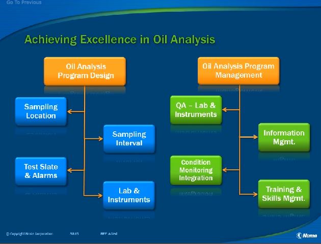 - Promoting Oil Analysis Excellence within the organization and creating reliability champions