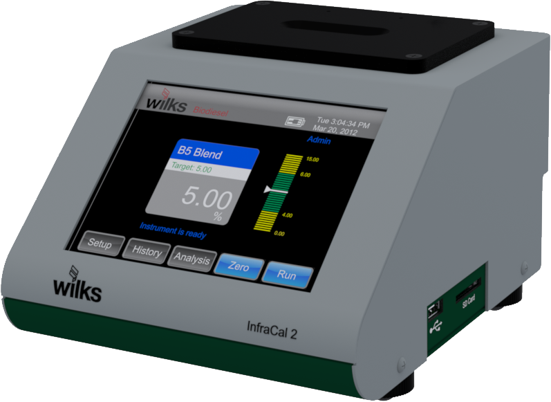 As the global commitment to renewable energy sources grows, the importance of using biodiesel as a blending component with diesel fuel has increased. Biodiesel consists of fatty acid methyl esters (FAME) which are produced by the transesterification of certain feedstock oils, such as soy, rapeseed, canola, and others. The biodiesel is then blended with diesel fuel at amounts required by the regulatory agencies of different countries. It is important for fuel terminals and distributors, as well as regulatory agencies, to check the concentration of biodiesel in the diesel fuel in order to make sure it is within these allowable limits. Diesel fuel with too little biodiesel will not meet renewable fuel standards and fuel with too much biodiesel may cause engine failures.