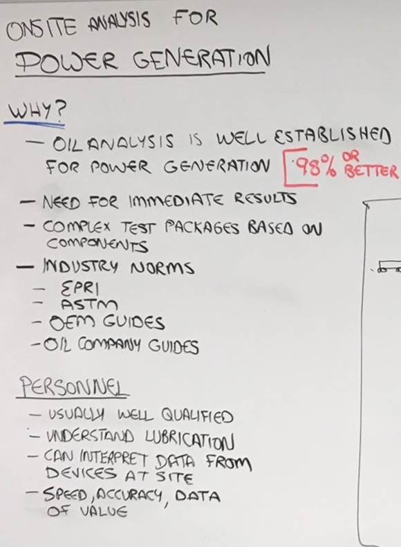 Power generators are familiar with oil analysis and have been using this technique for years to monitor expensive equipment. Having this capability on site makes it even more powerful as they can get answers immediately and make decision without waiting for results to come back from a commercial lab.
