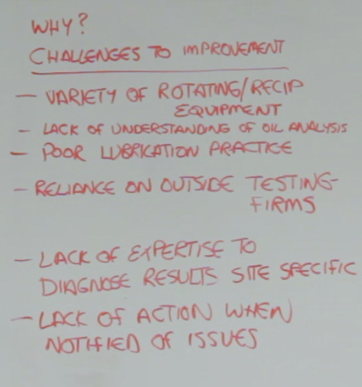 Today, on-site oil analysis is integral to an optimized on-site lubrication program since it reaches across the facility and affects all asset components that are lubricated. However, for many years on-site oil analysis wasn’t performed due to the large variety of rotating and reciprocating equipment within a facility and because of the different duty cycles, components and lubricants used. There was a lack of understanding about the role of oil analysis since it was often included as part of an oil company’s offerings. Also, there was a reliance on outside testing labs and poor in-house lubrication practices. Often, there was a lack of in-house expertise needed to diagnose oil analysis results and an overall lack of action when issues were discovered.
