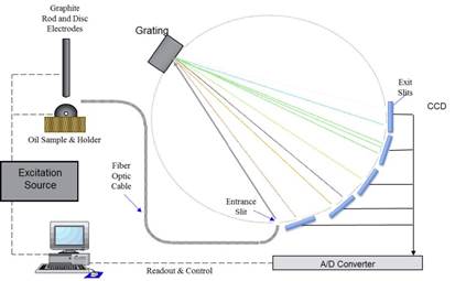 These emissions can be separated into individual wavelengths and measured using a properly designed optical system. The graphite electrode (Rotating disk RDE) technique is widely used for oil analysis throughout the world, and is the standard for the United States Department of Defense Joint Oil Analysis Program (JOAP) JOAP has also been adopted by many different organizations who want to balance ease of use and ruggedness with multi-elemental analysis with lab quality results.