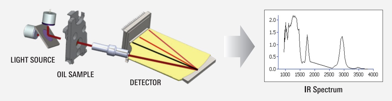 The IR spectrometer measures the chemistry of the lubricant and contamination in one minute using only one drop of oil; no chemicals or solvents are required. It combines ease of use, ruggedness and laboratory precision in a small package, which is ideal for field use.